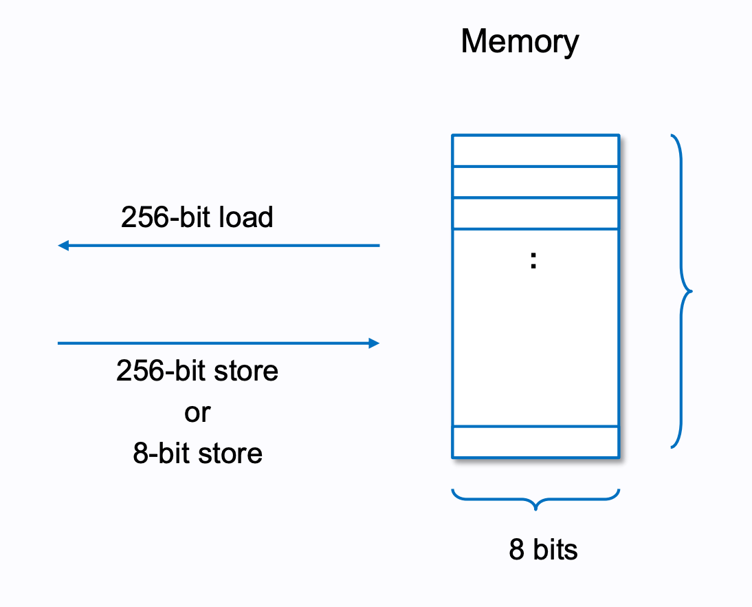MSTORE/MSTORE8/MLOAD 명령어로 액세스 가능합니다. 각 명령어들의 의미는 아래와 같습니다.